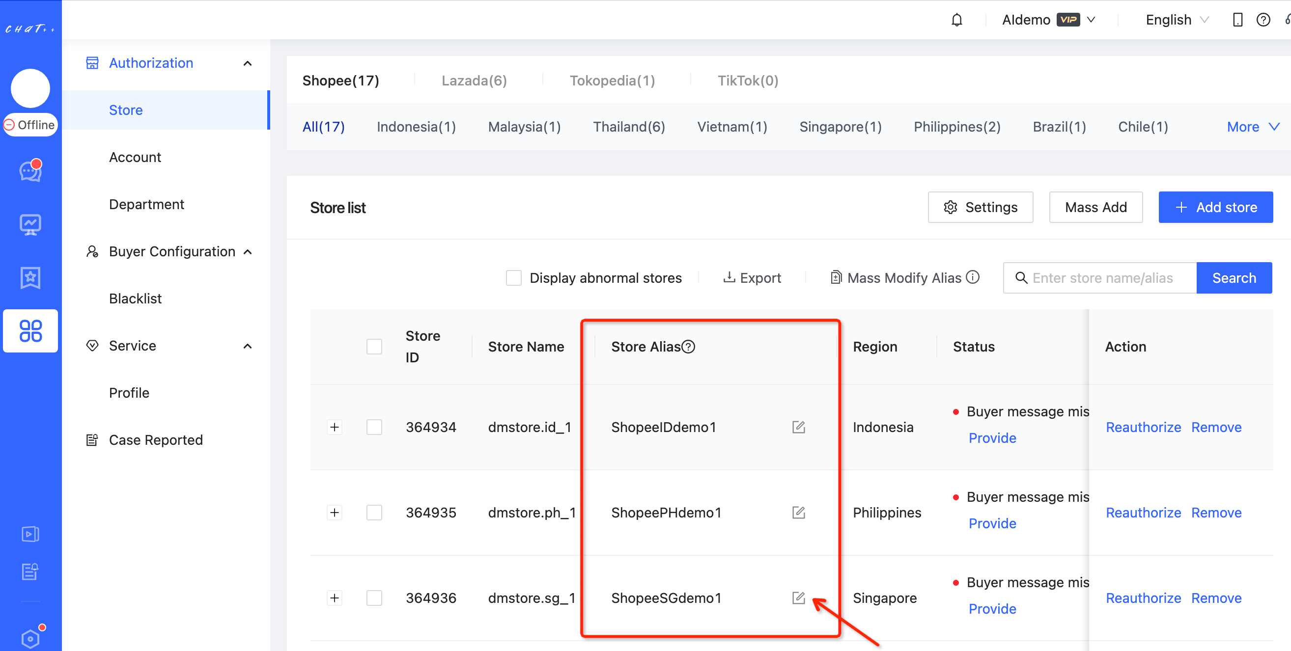 As e-commerce customer service workbench, ChatPlusAI need merchant authorize order, item, logistics, promotion data in the daily work. All those data come from marketplaces (i.e. shopee, Lazada) through official APIs. Add Shop is merchant inform marketplaces to authorize those data to ChatPlusAI. As ChatPlusAI not only responds customer’s query, but also responds all kinds of customer’s behavior, like reviews, return-refund behavior, … besides chat authorization, ERP authorization is needed as well.